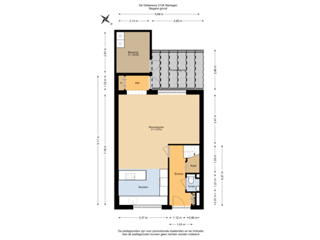 - 120 m² (20,00 meter diep en 6,00 meter breed)