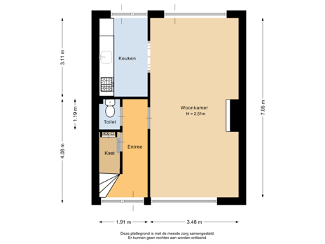 De indeling op de begane grond is: