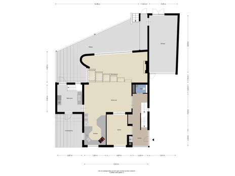 - 224 m² (18,70 meter diep en 12,00 meter breed)