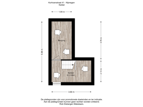 De kelder beschikt over stahoogte en biedt verrassend veel potentie. Er is een oorspronkelijke uitgang naar de achtertuin aanwezig (momenteel met zand bedolven, maar nog intact). In de straat zijn voorbeelden te vinden waarbij de kelder open is en geïntegreerd is in de woonkamer, wat zorgt voor extra leefruimte en een speels woonniveau. De royale tuin biedt volop mogelijkheden voor een uitbouw van de woning, waardoor extra woonruimte eenvoudig te realiseren is