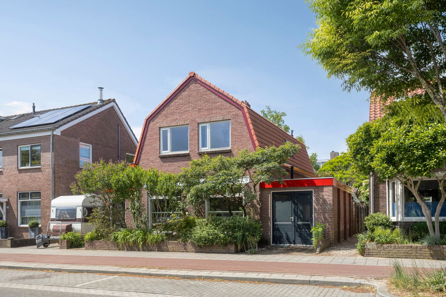 Entree, hal met massief eikenhouten vloer en toegang tot de woonkamer. De woonkamer is eveneens voorzien van een massief eikenhouten vloer en beschikt over een sfeervolle houtkachel, alsmede toegang tot een tweede hal met trapopgang naar de verdiepingen. Aan de achterzijde van de woning bevindt zich de woonkeuken. De keuken is uitgerust met een keramisch werkblad en diverse inbouwapparatuur, waaronder een inductiekookplaat, afzuigkap, Quooker, combioven, oven, vaatwasser en een koel-vriescombinatie. Vanuit de keuken is er toegang tot de patio, de kelder en de bijkeuken. De bijkeuken biedt toegang tot de achtertuin en is ingericht met een opstelplaats voor witgoed, de cv-installatie, een inbouwkast en een toiletruimte met hangcloset en fonteintje. Aansluitend bevindt zich een (slaap)kamer van circa 16 m², voorzien van een bamboevloer en veel daglichttoetreding. De keuken, bijkeuken en (slaap)kamer zijn voorzien van vloerverwarming. De garage/atelierruimte grenst aan een overkapping.
