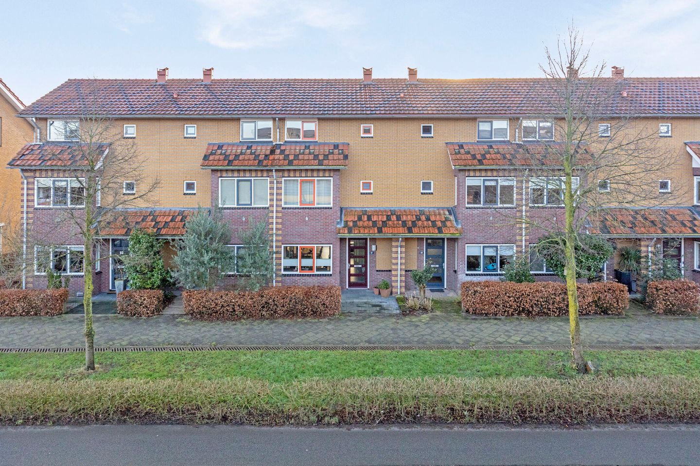 De Terralaan is een rustige, verkeersluwe straat met voldoende parkeergelegenheid voor de deur. Via de voortuin bereik je de overdekte voordeur. Eenmaal binnen kom je in de hal, waar je het toilet, de meterkast en ruimte voor een garderobe vindt. Vanuit hier heb je toegang tot de ruime en lichte woonkamer.
