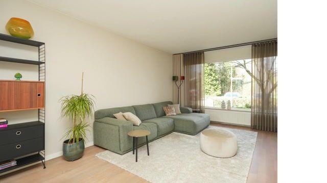 Begane grond: Via de overdekte entree betreed je de woning en kom je binnen in de ontvangsthal met garderobe en hal met meter-/ trapkast, toiletruimte en toegang tot de living. Deze royale leefruimte (36 m²) biedt volop mogelijkheden voor het creëren van een comfortabele zit- en eethoek. In 2023 zijn de wanden geschilderd in een warme beigetint. De keuken (merk Boffi) is opgesteld in een rechte wandopstelling met diverse inbouwapparatuur. Denk hierbij aan een 5-pits gasfornuis met afzuigkap, vaatwasser, oven, magnetron, 1,5 spoelbak en een koel-vriescombinatie.