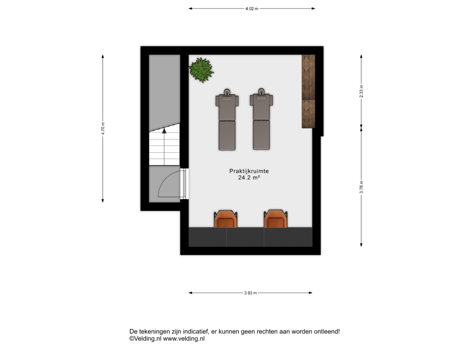 - Praktijkruimte/kantoor buitenom bereikbaar, ca. 24 m².