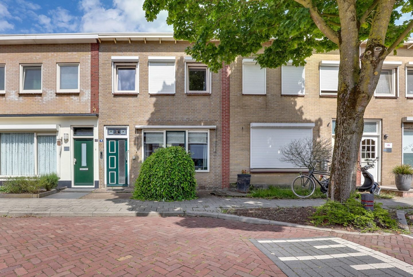 Direct bij centrum gesitueerd, verrassend ruim, karakteristiek woonhuis met o.a. prachtig diepe tuin met bike-/motorport, berging en fraaie veranda / overkapping inclusief de betonnen lounge set op leistenen vloer.