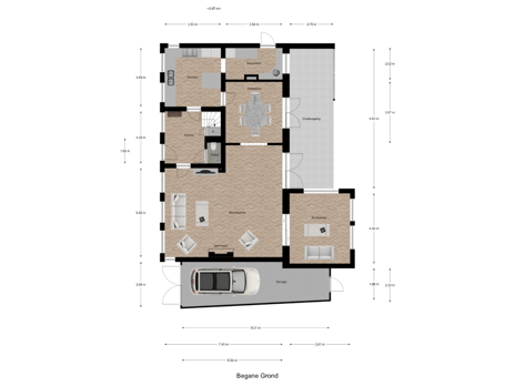 • Eetkamer met openslaande deuren naar het terras met glazen overkapping