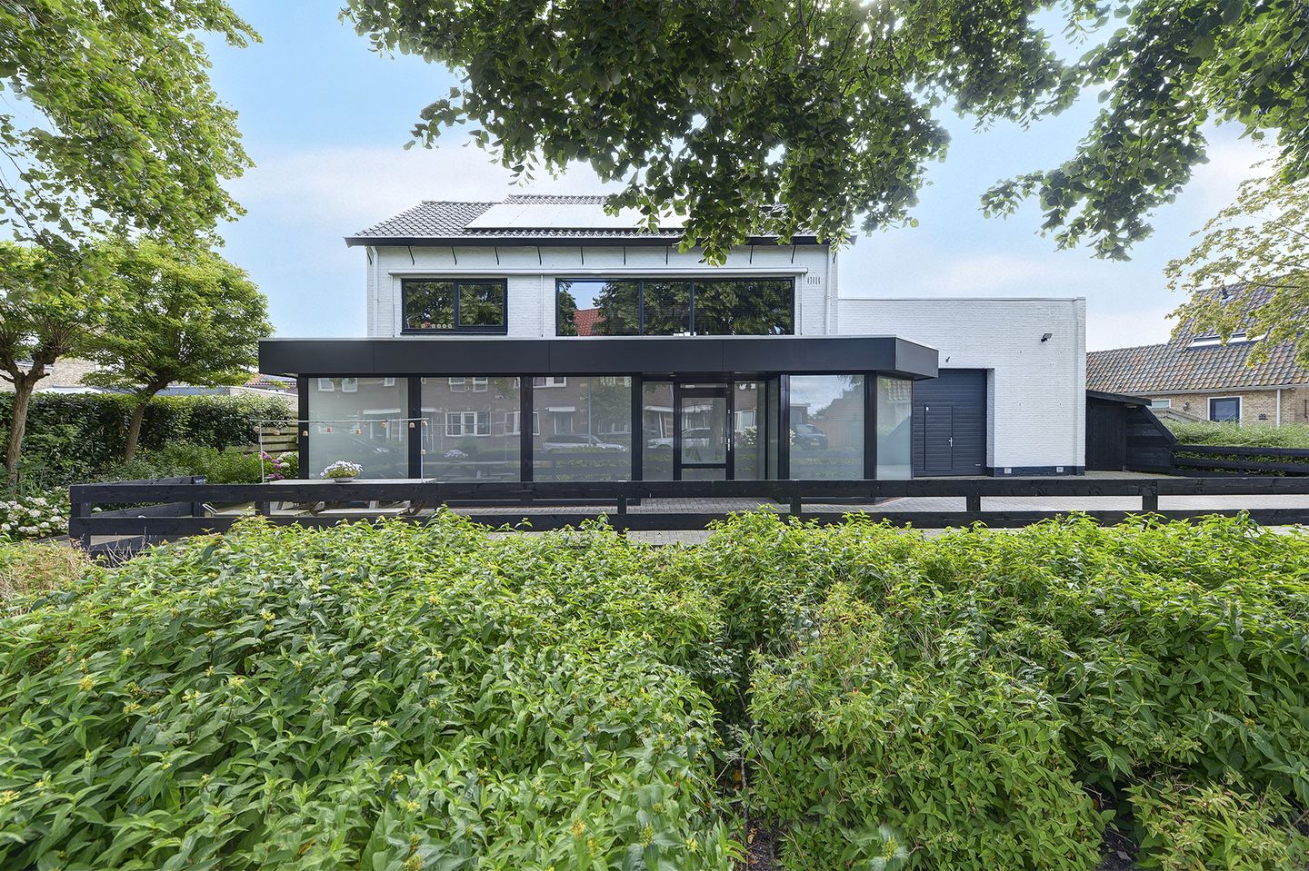 De woning biedt de luxe van een ruime tuin en een bijzonder dakterras. Het dakterras is speels aangekleed met grote bloembakken, waaronder olijfbomen, wat een zuidelijke sfeer creëert. Dankzij de vele beplanting geniet u van veel privacy. Een overkapping op het dakterras voorzien van heaters zorgt ervoor dat u lange, zwoele zomeravonden kunt doorbrengen, en biedt bescherming tegen een zomerse bui.