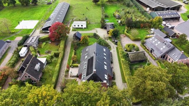 Karakteristieke elementen, zoals de ronde boerderijramen, zijn (her-) gebruikt en de woonkamer is uitgerust met en suitedeuren. De naastgelegen schuur (ca. 60 meter diep!) is in 2018 voorzien van een nieuw dak en beschikt over een inpandige werkplaats, twee paardenstallen, zadelkamer en een toilet. In combinatie met ca. 6.900 m² eigen grond biedt deze locatie uitstekende mogelijkheden voor paardenliefhebbers.