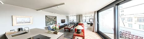 Dit penthouse is volledig gestyled en ingericht door Studio Jan des Bouvrie. Alles is nieuw en ongebruikt. Dit fraaie penthouse wordt gestoffeerd en gemeubileerd opgeleverd.