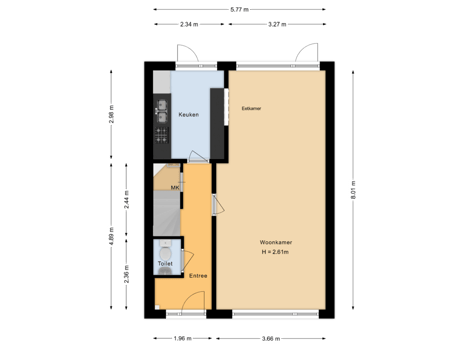 - 60 m² (10,00 meter diep en 6,00 meter breed)