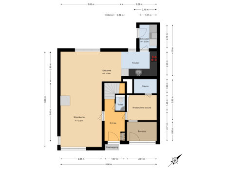 - 46 m² (6,74 meter diep en 6,83 meter breed)
