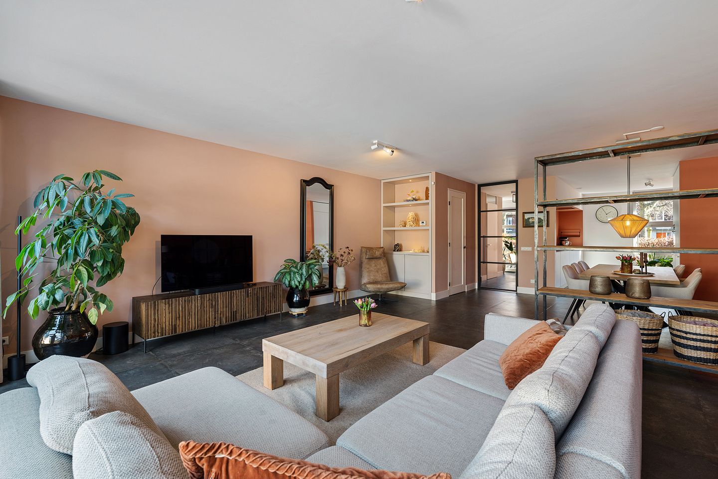 Entree, gang, uitgebreide meterkast met voldoende groepen, aardlekschakelaars, glasvezelkabel en 3-fasen aansluiting. Modern vrij hangend toilet met fonteintje. Royale uitgebouwde woon-/eetkamer met garderobe-/bergkast, maatwerk inbouwkast met verlichting en openslaande deuren naar de zonnige achtertuin met stenen berging en achterom. Moderne half open keuken in lichte kleurstelling met een tweezijdige keukenopstelling en voorzien van hoogwaardige inbouwapparatuur waaronder een 4-pits gaskookplaat, inbouw afzuigkap, koelkast, vriezer, vaatwasser, oven en Quooker. Op de gehele begane grond ligt een fraaie keramische tegelvloer (80 X 80 cm) met vloerverwarming.