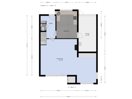 - 90 m² (9,00 meter diep en 10,00 meter breed)