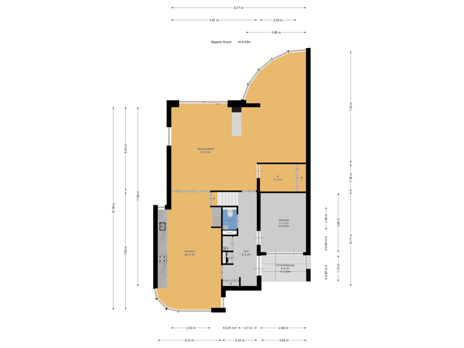 Voortuin en een oprit met parkeerplaats voor 2 auto's. De entree van de woning is aan de zijkant. Hal voorzien van CV-kast, meterkast, garderobe en vaste trapopgang naar de 1e verdieping. Moderne toiletruimte voorzien van toilet en fonteintje. Via een zeer praktische binnendeur bereik je de garage van 11m2, die een openslaande deur heeft en tevens in zijn geheel kan worden opengeklapt. De ruime woonkamer met erker van circa 54m2 en gashaard bevindt zich aan de achterzijde met uitzicht op de mooi aangelegde tuin en een houten schuifpui naar de zonnige achtertuin. Bij de woonkamer bevindt zich tevens een praktische werkkamer of hobbyruimte, afgesloten met een stalen deur. In de tuin is een mooie veranda aangelegd met schuifdeuren. Hier kun je heerlijk vertoeven en genieten van vele mooie zomeravonden. Aan de voorzijde van de woning bevindt zich de riante woonkeuken van 29m2 met diverse inbouwapparatuur (Quooker, koel-/vriescombinatie, combi oven, inductiekookplaat met ingebouwde afzuiger) en grote eettafel. De woonkamer en hal zijn voorzien van een pvc vloer met vloerverwarming en de keuken is voorzien van tegels met vloerverwarming.