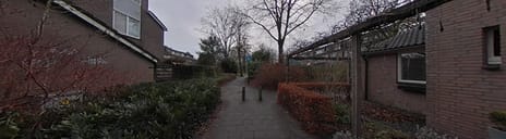 De voortuin is netjes en verzorgd aangelegd en geeft direct een prettige eerste indruk van de woning. Een fraaie pergola met een prachtige blauwe regen vormt een sfeervol welkom, aangevuld met diverse beplanting die zorgt voor een groene en uitnodigende uitstraling.