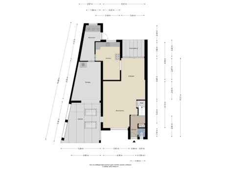 Je parkeert je auto op de eigen oprit onder de carport en loopt zo naar de voordeur. Voor wie nog meer parkeerplek wil: een deel van de voortuin is ook om te bouwen naar extra oprit. In de hal ligt een tegelvloer, die is doorgelegd in het toilet. Vanuit de entree heb je toegang tot het toilet, de trap naar boven en de woonkamer.