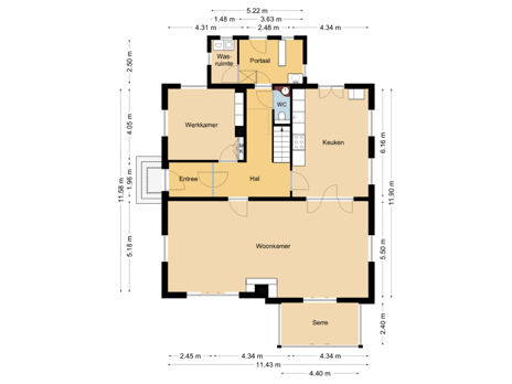De entree met originele voordeur geeft, via de tussenhal met tussendeur, toegang tot de centrale hal. Hier zult u verrast zijn door de vele authentieke kenmerken zoals de paneelwanden en -deuren en de plafondornamenten. In de voormalige keuken is aan de linkerzijde een studeerkamer met (vernieuwde) meterkast. Aan de rechterzijde is toegang tot de living area met royale living en woonkeuken. Ook hier zult u onder de indruk zijn van de plafondornamenten, de robuuste schouw met open haard en houten vloerdelen. De serre is met schuifdeuren af te sluiten van de living. Een sfeervolle plek om uw dag te beginnen óf af te sluiten maar ook als werkkamer of speelkamer prima te gebruiken. De landelijke leefkeuken is voorzien van vloerverwarming. Het aanrechtblad is van natuursteen en de volgende inbouwapparatuur is aanwezig: Boretti gasfornuis met bakplaat, vaatwasser, quooker. In de vaste kast is de koel-vriescombinatie.