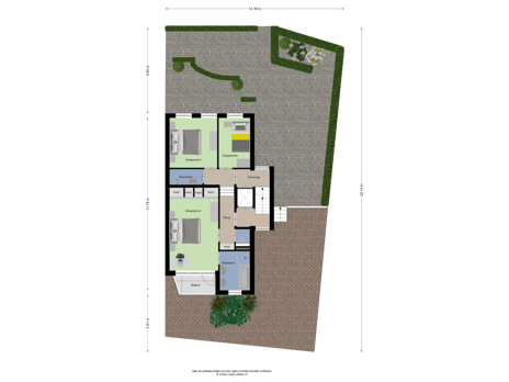 - 60 m² (5,00 meter diep en 12,00 meter breed)