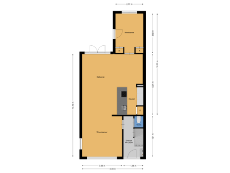 - 104 m² (13,00 meter diep en 8,00 meter breed)