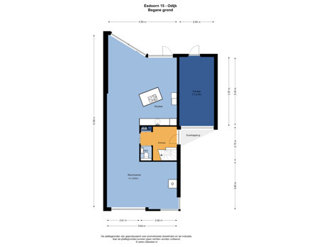 - 88 m² (9,10 meter diep en 9,70 meter breed)