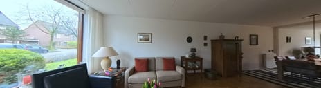 Via de zij entree bereikt u de hal met toilet voorzien van fonteintje, meterkast en toegang tot de riante woonkamer.