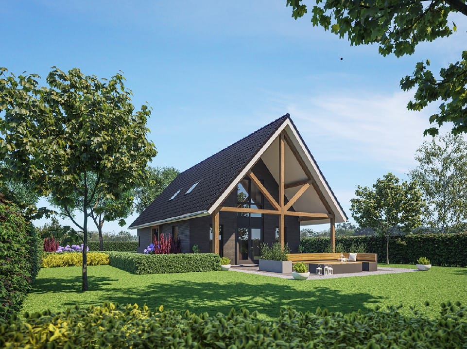 Voor de bouw van een nieuwe woning is aansluiting gezocht bij voorbeeld van een woning welke goed op deze kavel zou passen, is als afbeelding in deze brochure opgenomen. Deze woning is circa 175 m² en uitgerust met vloerverwarming en topkoeling, zonnepanelen, luchtwarmtepomp met 180L boiler met Monoblock buitenunit en sanitair afwerking.