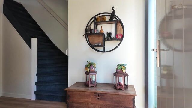 Nadat je de auto op je eigen oprit hebt geparkeerd, loop je via de voordeur de woning binnen. Bij de entree vind je de vernieuwde meterkast, het toilet met fontein, de trapopgang naar de eerste verdieping en de trapkast. Wat meteen opvalt als je de woonkamer binnenloopt, is de hoeveelheid ruimte die is gerealiseerd middels de uitbouw. Vanuit de woonkamer heb je toegang tot de grote lichte werkkamer.