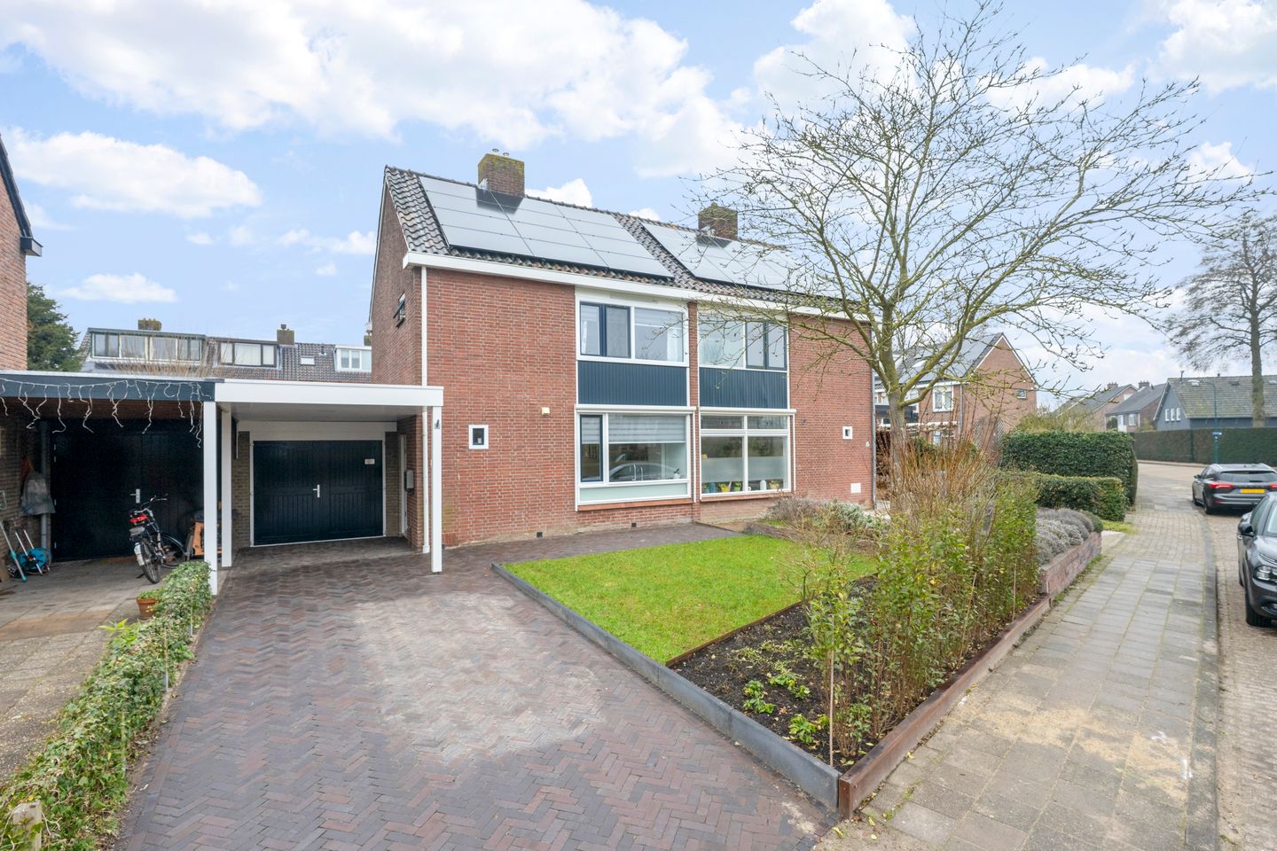 De woning beschikt over vier volwaardige slaapkamers, een garage en een moderne keuken uit 2020 die van alle gemakken is voorzien. Dankzij de airco’s op zowel de begane grond als de eerste verdieping is het binnenklimaat het hele jaar door aangenaam. Met 12 zonnepanelen en het sedumdak is bovendien gedacht aan duurzaamheid en lagere energielasten. De eigen oprit biedt ruimte voor maar liefst twee auto’s op eigen terrein, wat zorgt voor extra gemak.