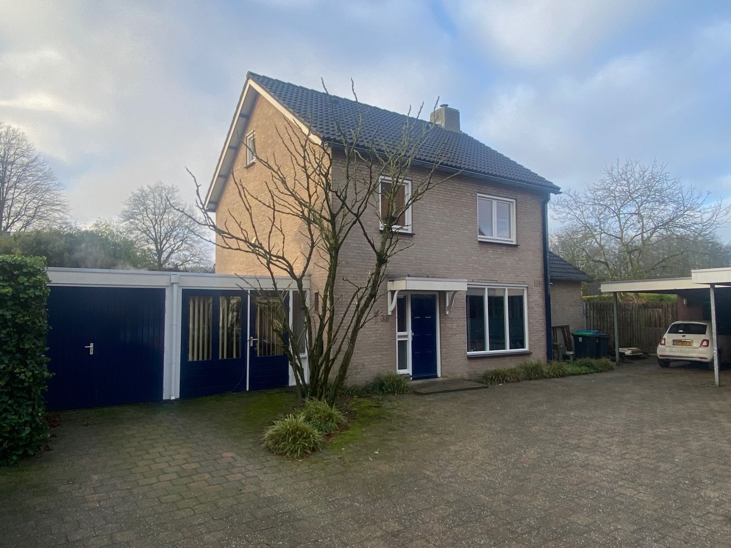 - Aangebouwde stenen garage, carport en vrijstaande stenen garage