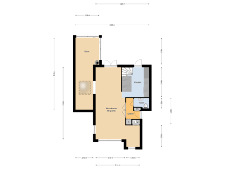 - 91 m² (10,57 meter diep en 8,65 meter breed)