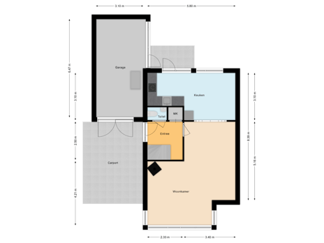 - 84 m² (8,00 meter diep en 10,50 meter breed)