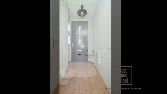Via de ruime entree betreedt u de woning. De hal is afgewerkt met een laminaatvloer en beschikt over gestuukte wanden en plafonds, wat direct zorgt voor een nette en verzorgde uitstraling. Vanuit hier heeft u toegang tot de woonkamer, de toiletruimte en de trapopgang naar de eerste verdieping.