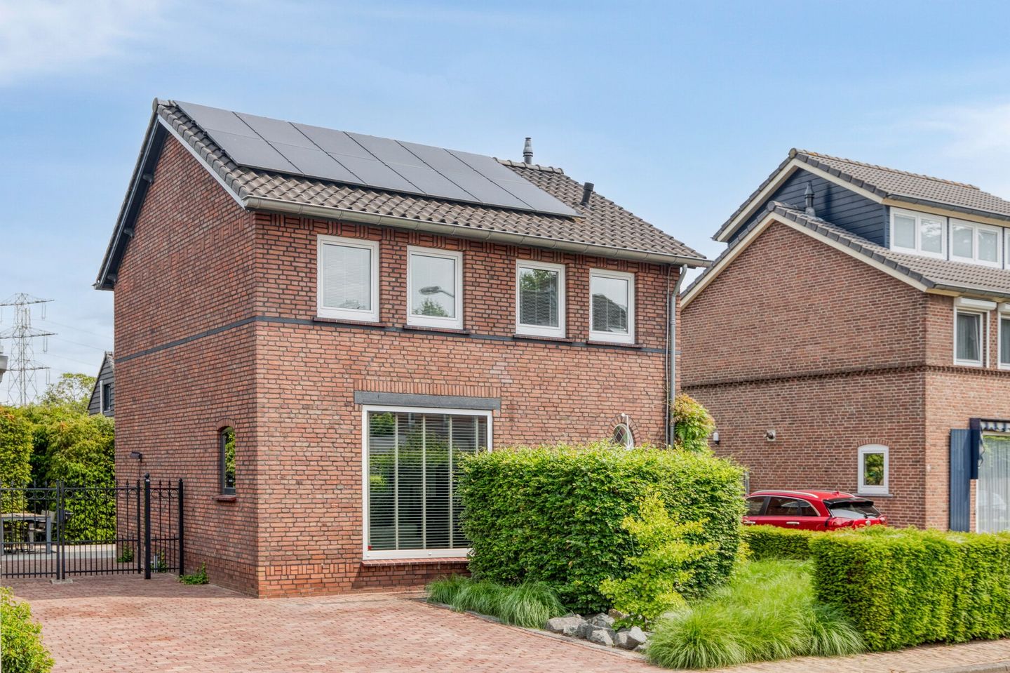 De uitstekend onderhouden voortuin van de woning is ruim van opzet en mooi groen aangelegd met borders met vaste beplanting, taxushagen, sierbestrating en voorzien van een buitenkraan en sensorverlichting. De oprit biedt parkeerplek voor 2 auto’s op eigen terrein, maar ook op openbaar terrein, direct voor de deur, is er ruim voldoende aan parkeergelegenheid aanwezig.