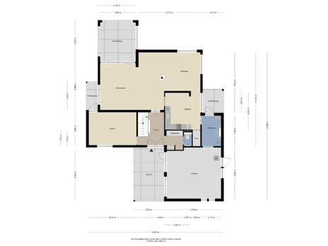 Bij aankomst via de oprit met carport, betreedt u de woning. De entree/hal geeft toegang tot de garderobe, meterkast, separate toiletruimte en de trap naar de eerste verdieping en de kelder. Vanuit de hal komt u in een ruime en lichte werkkamer, ideaal als praktijkruimte of kantoor aan huis, met een aparte buitendeur voor het ontvangen van klanten.