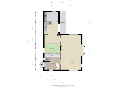 De informatie is door ons met de nodige zorgvuldigheid samengesteld, echter aan de inhoud hiervan kunnen geen rechten worden ontleend. Alle opgegeven maten en oppervlakten zijn indicatief, kunnen afwijken van de werkelijke situatie en zijn uitsluitend bedoeld om een indruk te geven van de indeling. Onzerzijds wordt geen enkele aansprakelijkheid aanvaard voor enige onvolledigheid, onjuistheid of anderszins, dan wel de gevolgen daarvan.