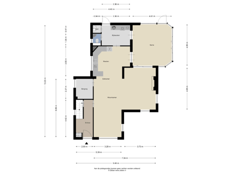De informatie is door ons met de nodige zorgvuldigheid samengesteld, echter aan de inhoud hiervan kunnen geen rechten worden ontleend. Alle opgegeven maten en oppervlakten zijn indicatief, kunnen afwijken van de werkelijke situatie en zijn uitsluitend bedoeld om een indruk te geven van de indeling. Onzerzijds wordt geen enkele aansprakelijkheid aanvaard voor enige onvolledigheid, onjuistheid of anderszins, dan wel de gevolgen daarvan.