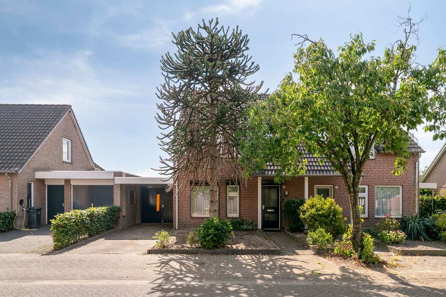 Voor de woning is de tuin opgebouwd uit vaste beplanting met een verharde toegang tot de voordeur en garage. Hier is voldoende ruimte om je auto te parkeren.