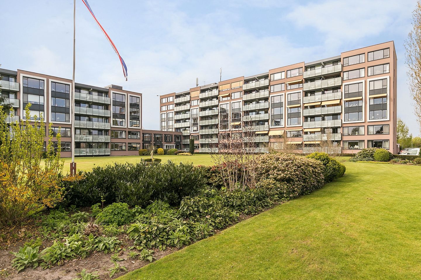 Via de hoofdingang van het complex komt u in de ruime hal met receptie, leestafel en gezellige zit. Het appartement is gelegen op de 5e verdieping van de hoogbouw en is te bereiken met de trap en met de lift. De gang naar het appartement is ruim en licht.