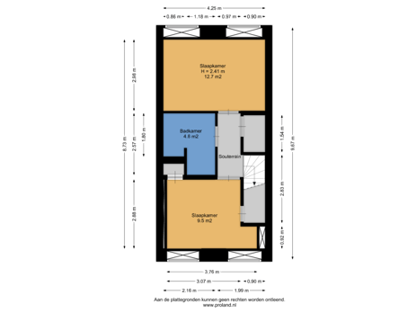 - 11 m² (2,50 meter diep en 4,31 meter breed)