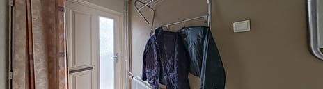 Laminaatvloer, radiator en rolluik handbediend.