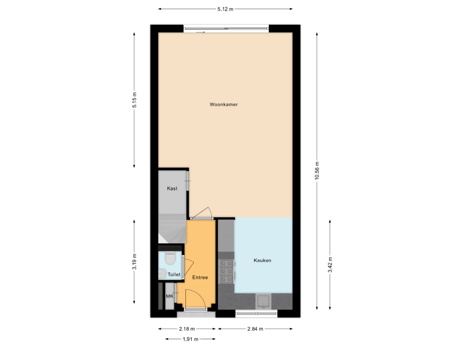 - 68 m² (13,00 meter diep en 5,25 meter breed)