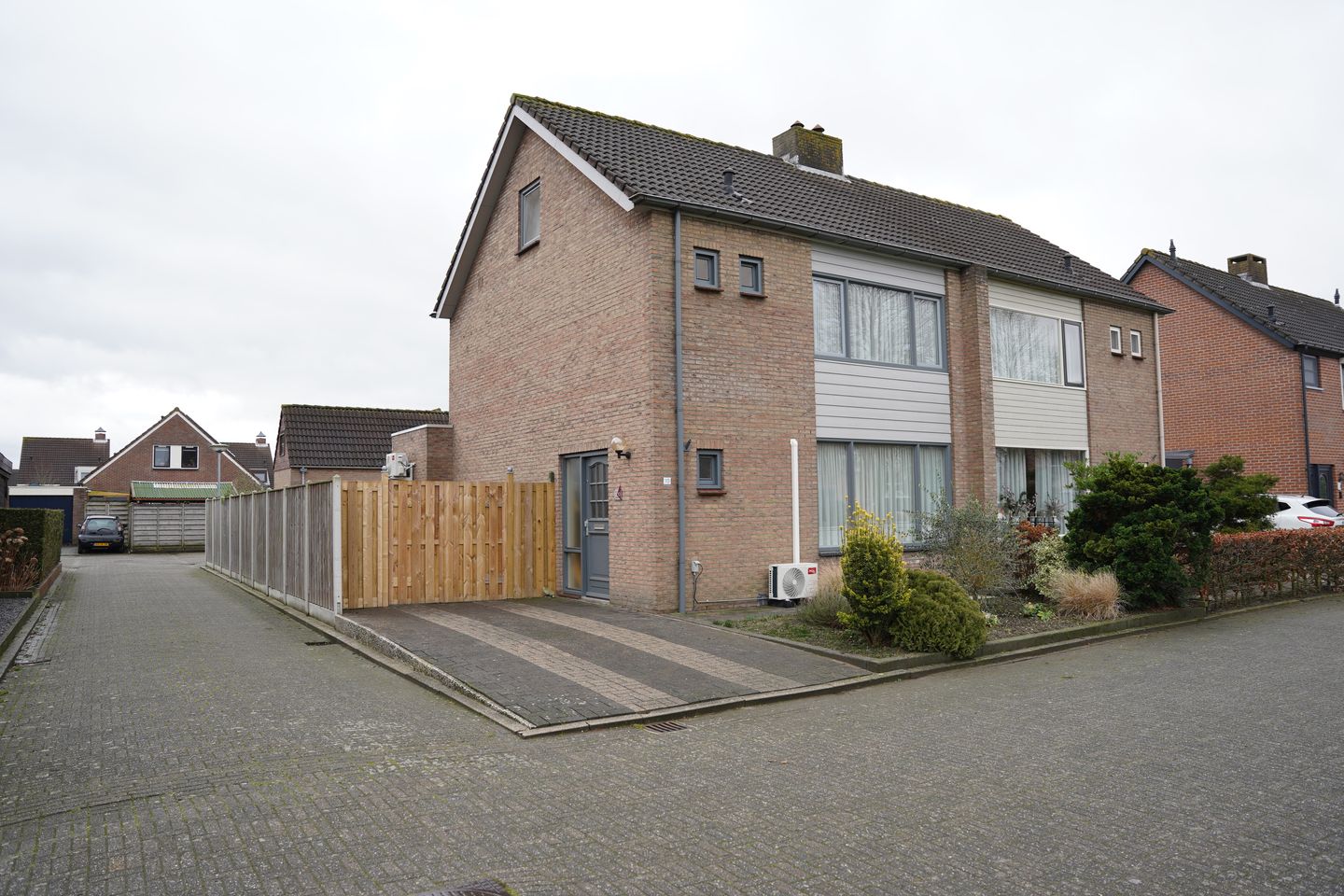 Aan de voorkant van het huis is een leuke voortuin en een ruimte oprit, met aan de zijkant nog een extra plek voor bijvoorbeeld een aanhanger.