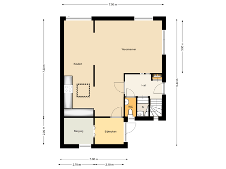 Entree/hal met moderne groepenkast, ruime kelderkast met proviand schappen en opstelplaats voor een cv-ketel uit 2022, modern toilet met fontein, gezellige woonkamer met veel lichtinval en een prettige uitstraling met veel mogelijkheden voor het inrichten van deze ruimte. De woonkamer heeft aan de westzijde een schuifpui naar een fraai terras met zon en privacy. De gehele begane grond is voorzien van een moderne laminaatvloer die het geheel extra cachet geeft. De open keuken is netjes maar eenvoudig van aard en werd opgesteld in een hoek. Vanuit deze ruimte is er toegang naar de bijkeuken met opstelplaats voor de wasmachine-/droger en een werk-/provisiekamer. Aan deze zijde van de woning is er toegang tot een ruim terras en de oprit.