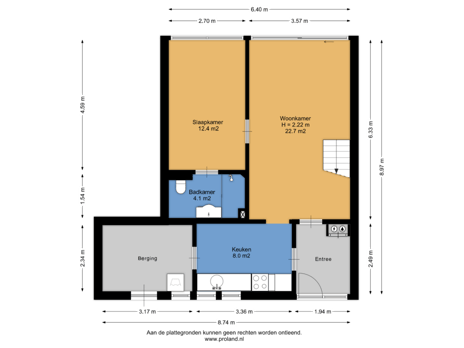 Begane grond: entree/hal, keuken, woonkamer, slaapkamer, badkamer, bijkeuken
