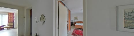 Vanuit de eerder vernoemde hal tevens toegang tot: slaapkamer thans in gebruik als studeer/werk-kamer ca. 2.70 X 3.65 m.; slaapkamer ca. 3.80 X 5.15 m. met kleding wandkast en toegang tot de geheel betegelde badkamer ca. 2.80 X 3.15 m. met ligbad/douche combinatie, wastafel in meubel, wandcloset voorzien van inbouw reservoir en een design radiator. De badkamer is tevens bereikbaar via de hal.