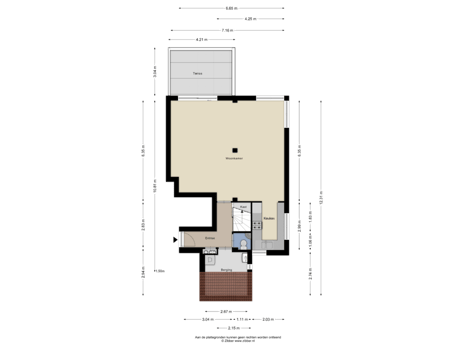 De lichte woonkamer geeft middels openslaande deuren toegang tot het terras (ca. 13m²) met prachtig uitzicht over het Wilhelminakanaal. De woonkamer biedt toegang tot de open keuken.