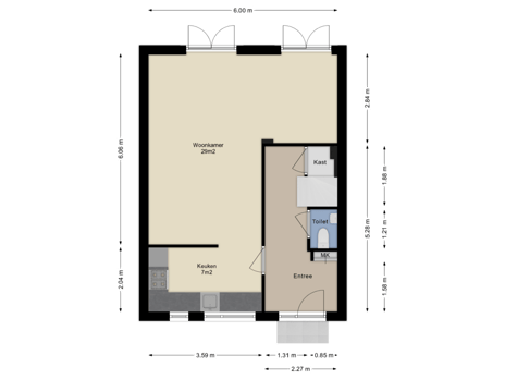 - 64 m² (10,00 meter diep en 6,40 meter breed)