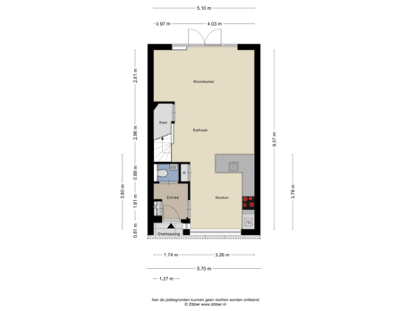- 61 m² (11,00 meter diep en 5,50 meter breed)