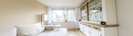 De woonkamer is zeer licht door de grote ramen. Door de eigentijdse stalen deur komt er ook daglicht vanuit de hal. Er is een design gashaard geplaatst. Via de pui betreedt u de tuin. Vanuit de woonkamer is er toegang tot een dichte keuken. De vloer is uitgevoerd in een whitewash eikenhouten vloer met vloerverwarming.