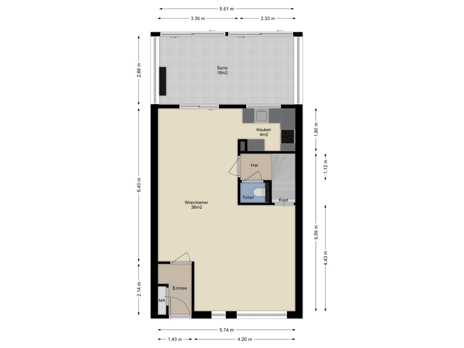 - 67 m² (10,54 meter diep en 6,34 meter breed)
